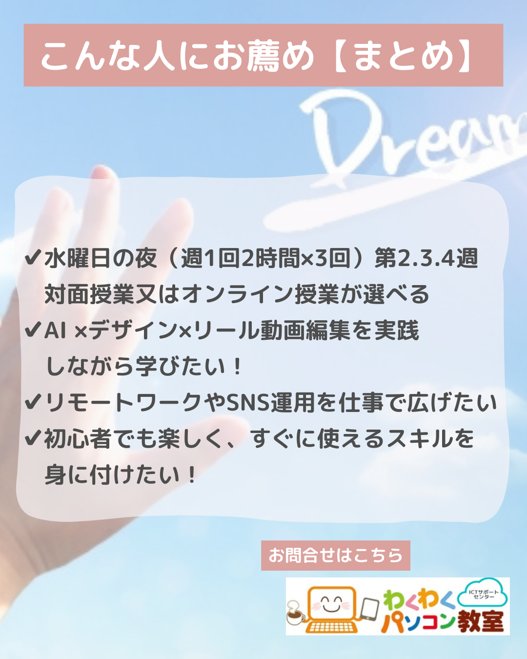 わくわくパソコン教室受講生以外の方も参加OKです。